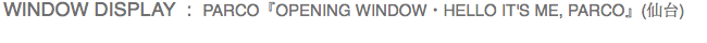 2008 PARCO : WINDOW『OPENING WINDOW・HELLO IT'S ME, PARCO』(仙台) 2008 PARCO : WINDOW『OPENING WINDOW・HELLO IT'S ME, PARCO』(仙台) 2008 PARCO : WINDOW『OPENING WINDOW・HELLO IT'S ME, PARCO』(仙台) 2008 PARCO : WINDOW『OPENING WINDOW・HELLO IT'S ME, PARCO』(仙台) 2008 PARCO : WINDOW『OPENING WINDOW・HELLO IT'S ME, PARCO』(仙台) 2008 PARCO : WINDOW『OPENING WINDOW・HELLO IT'S ME, PARCO』(仙台) 2008 PARCO : WINDOW『OPENING WINDOW・HELLO IT'S ME, PARCO』(仙台)