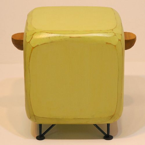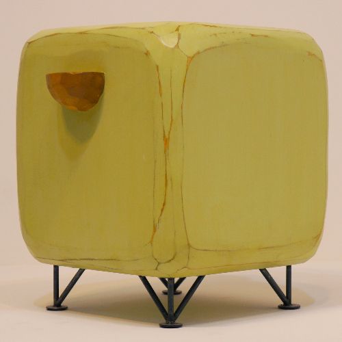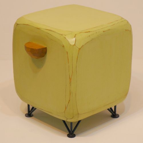 丸みを帯びた立方体に短い脚を合わせたユニークなフォルムで、