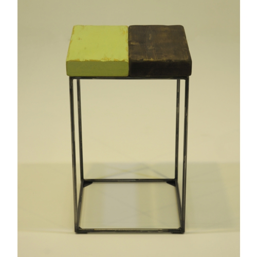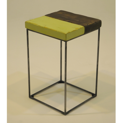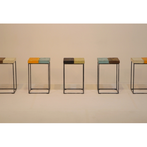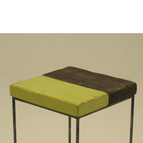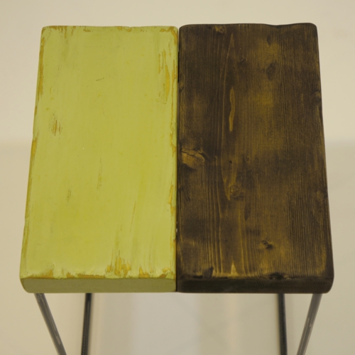 座面は、多彩に塗装したSPF材を用い、エイジング加工を施す事で